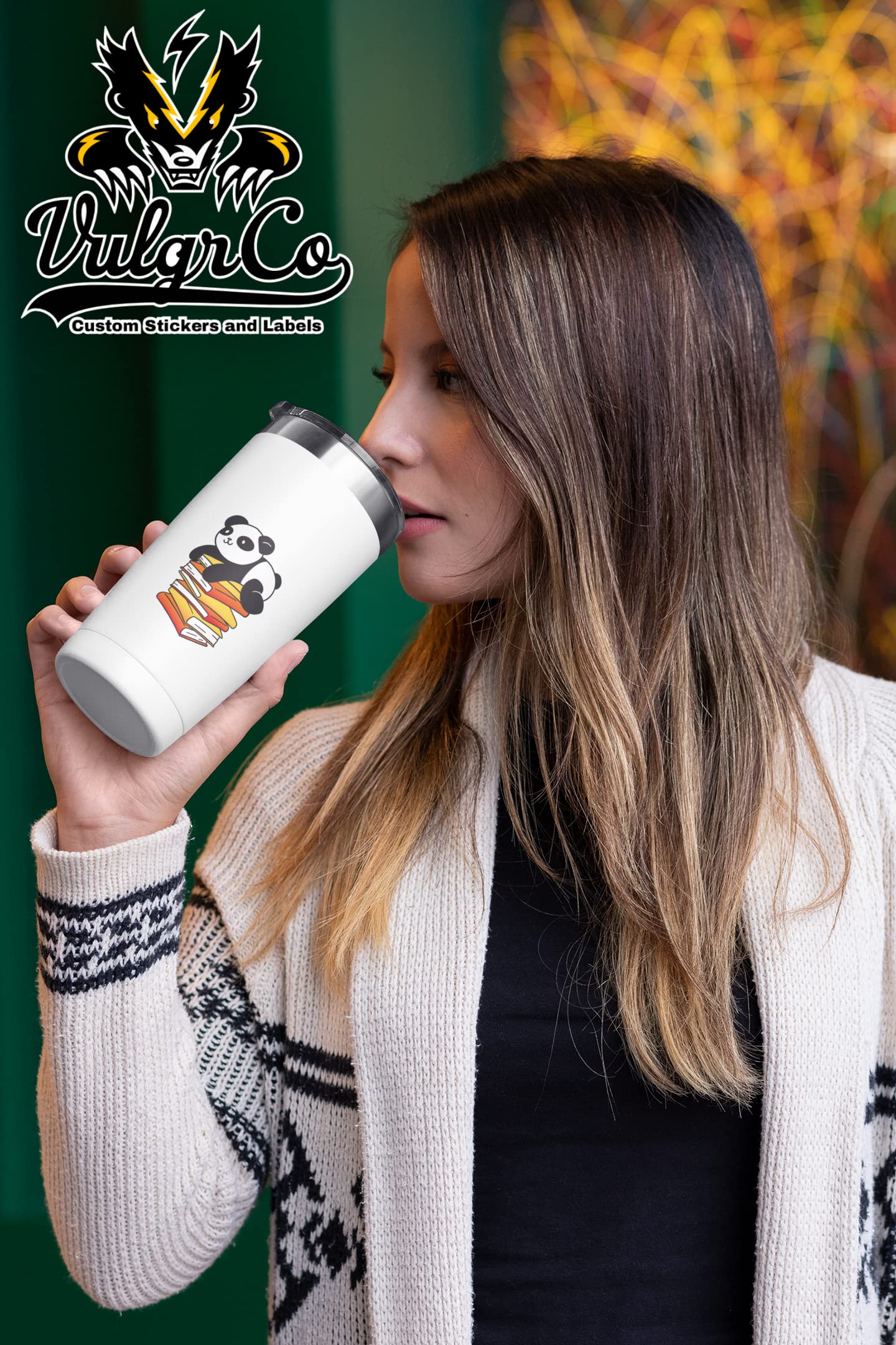 VulgrCo Cute Cartoon Panda Stack of Books Animal Funny Sticker Vinyl Waterproof UV Resistant Decal for Phones Laptops Water Bottles Tumblers Boats Cars Trucks Windows Kayak 3" inch Bumper Stickers